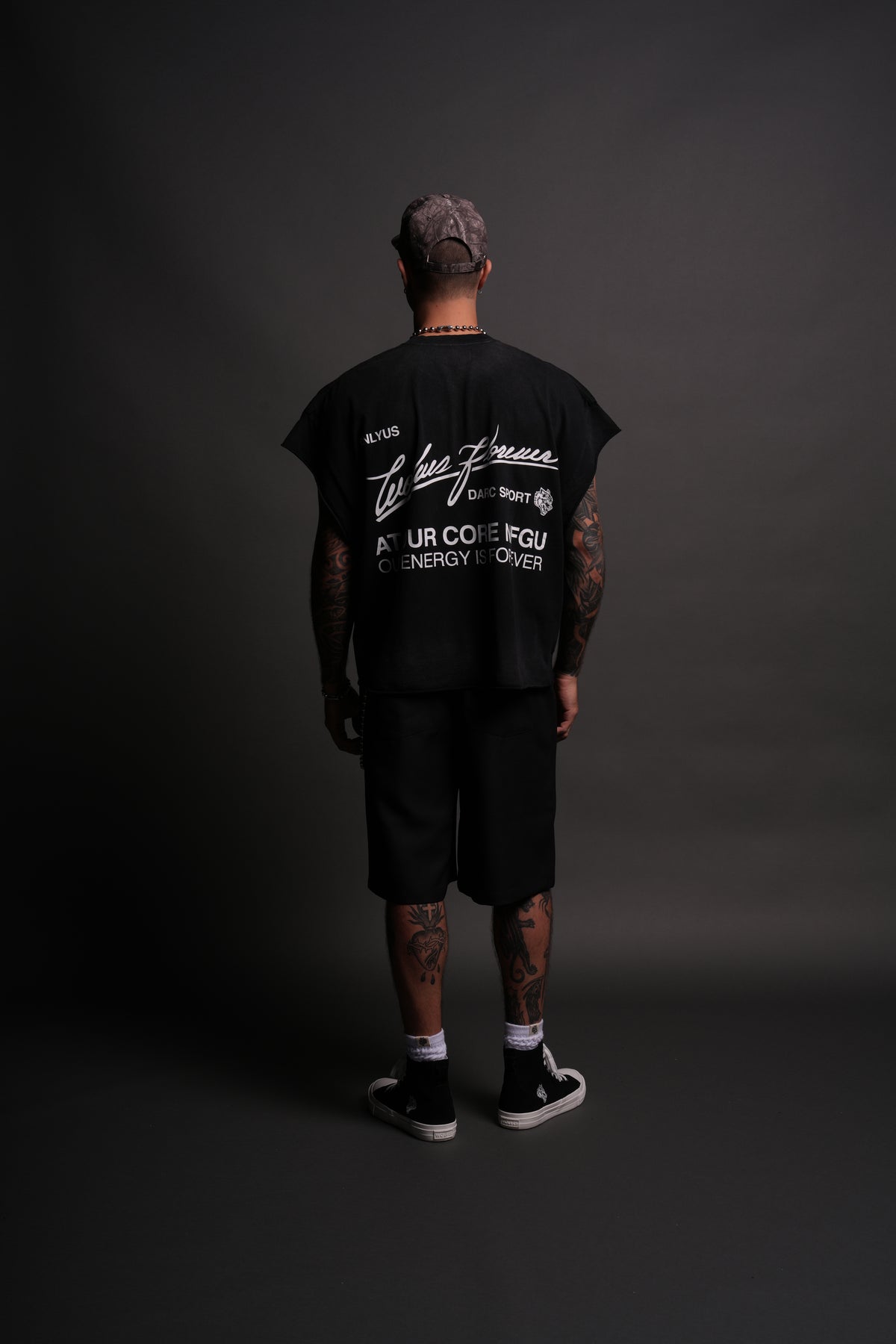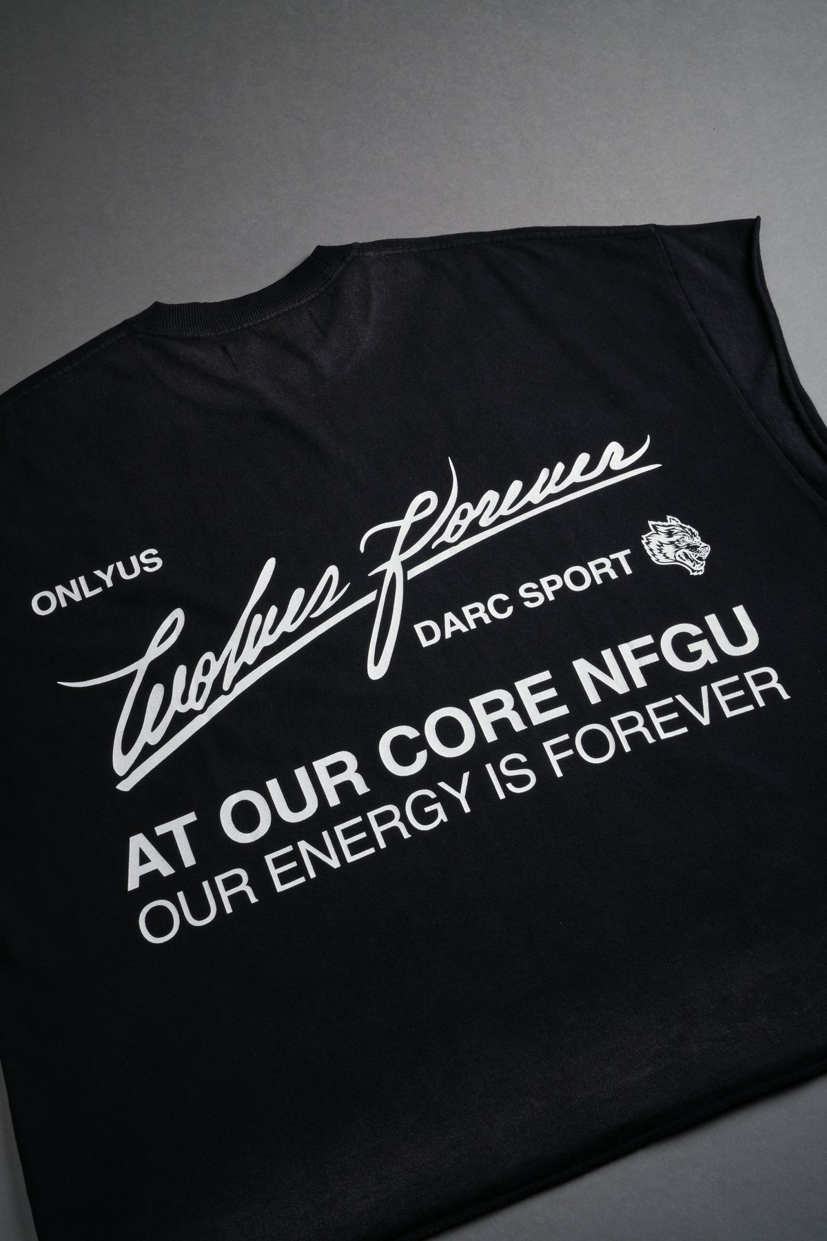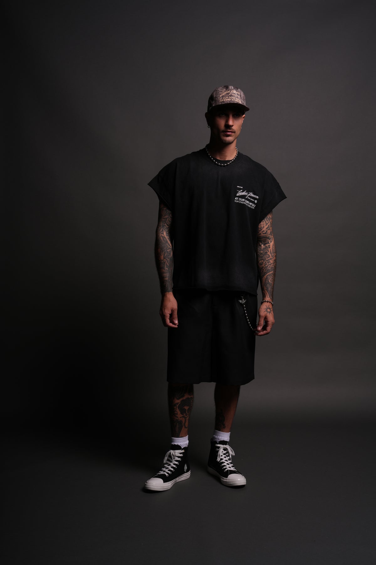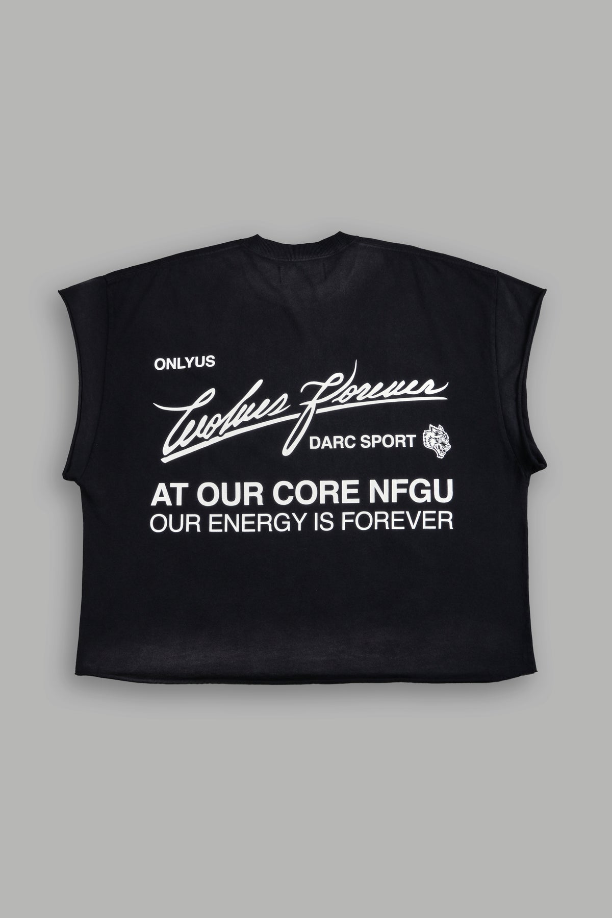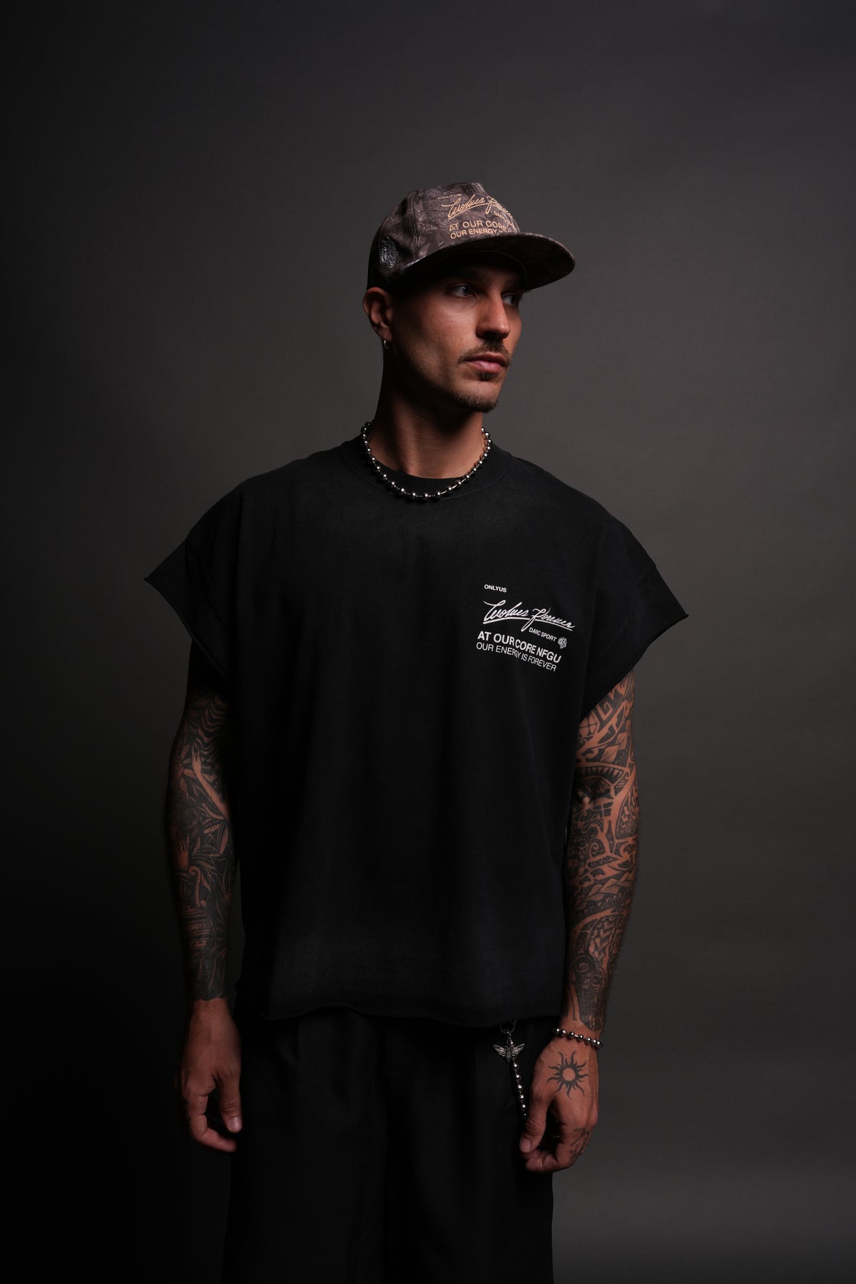 At Our Core "Grunge" Cut Off Tee in Black Drift Wash