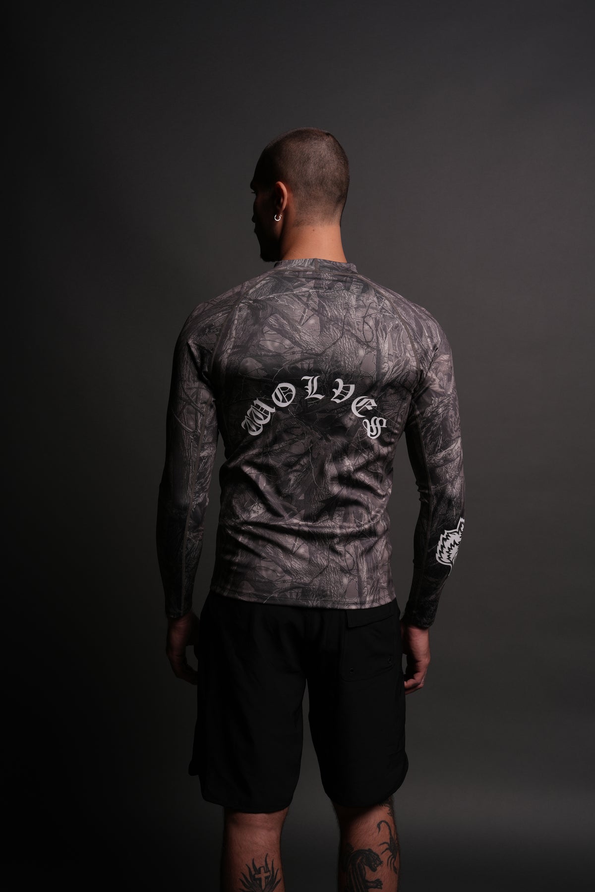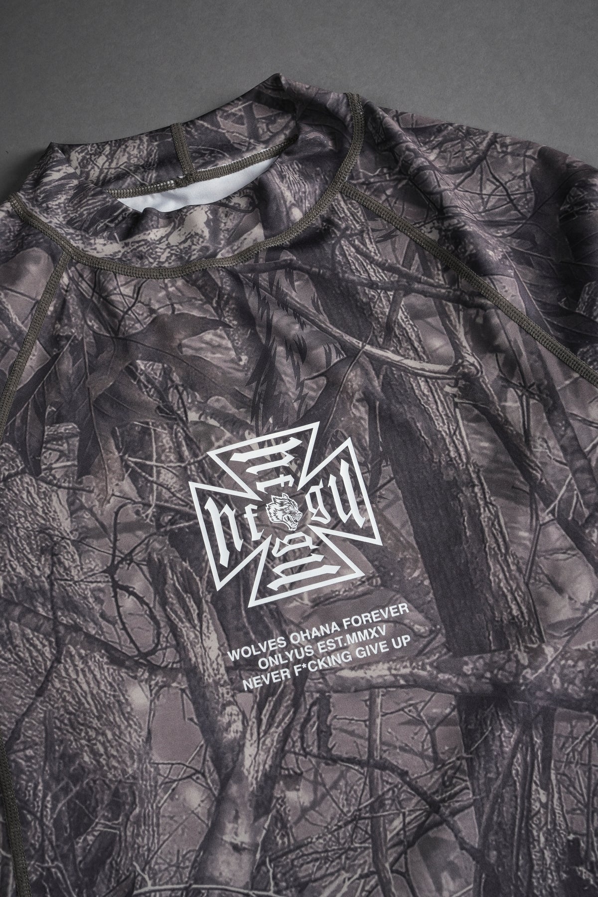Core Rash Guard in Dusk Moss Driftwood Forest Camo