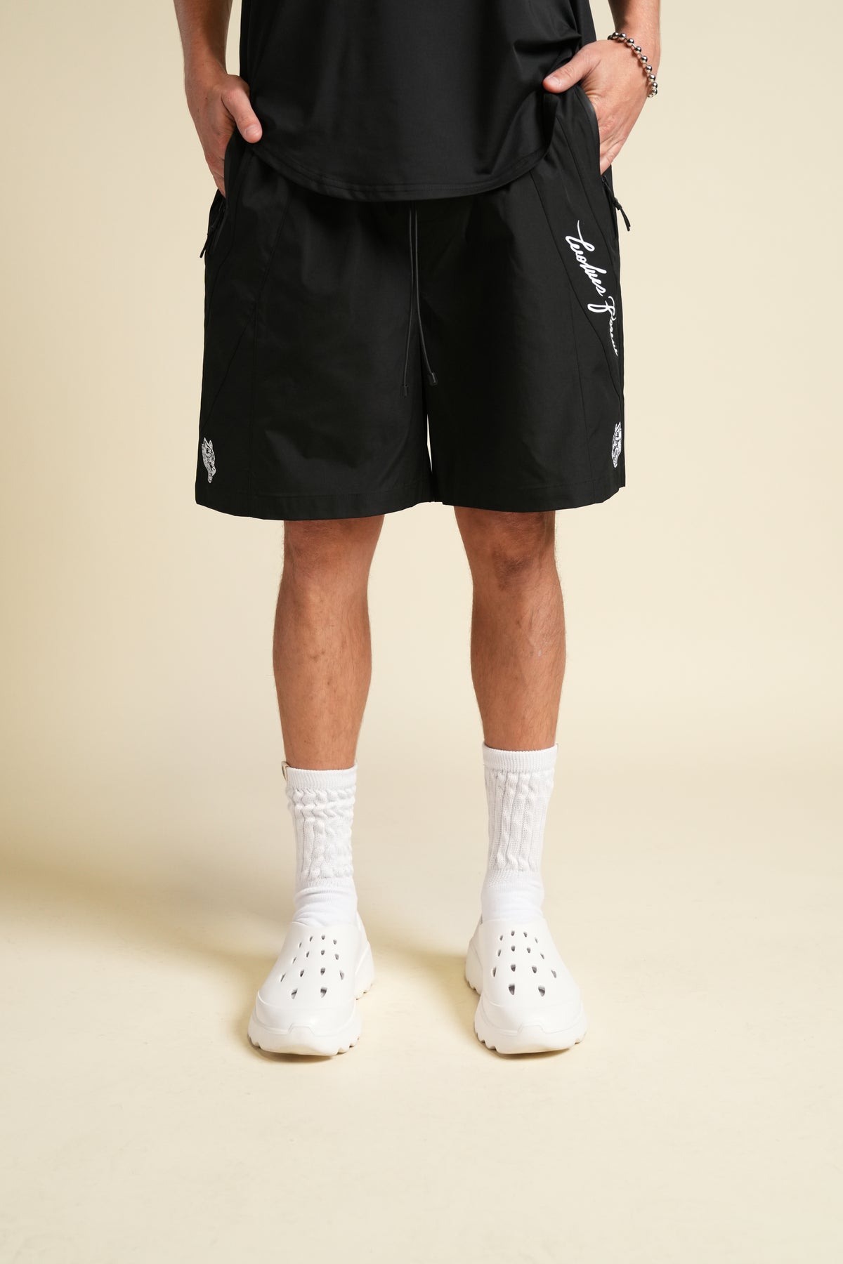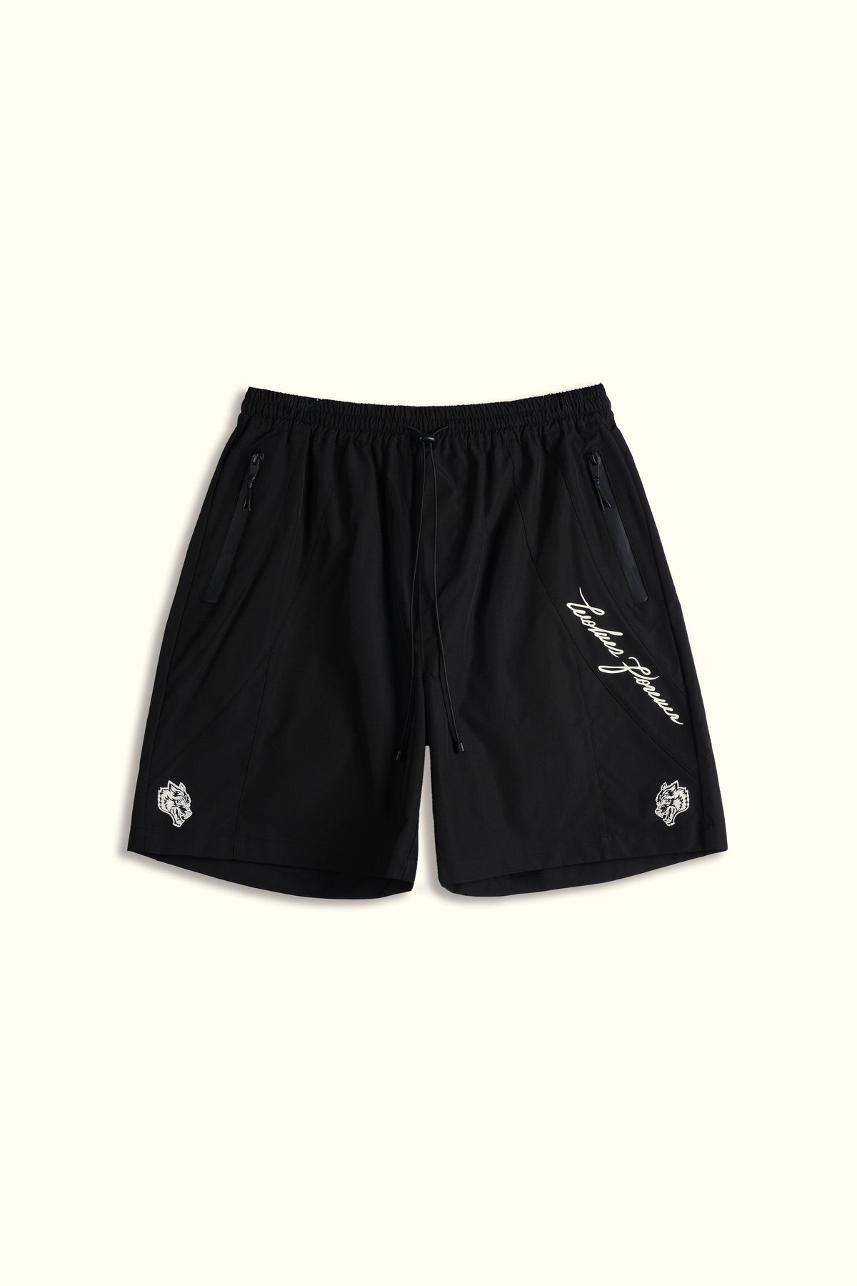 Dual WLVS FRVR Brolic Track Shorts in Black