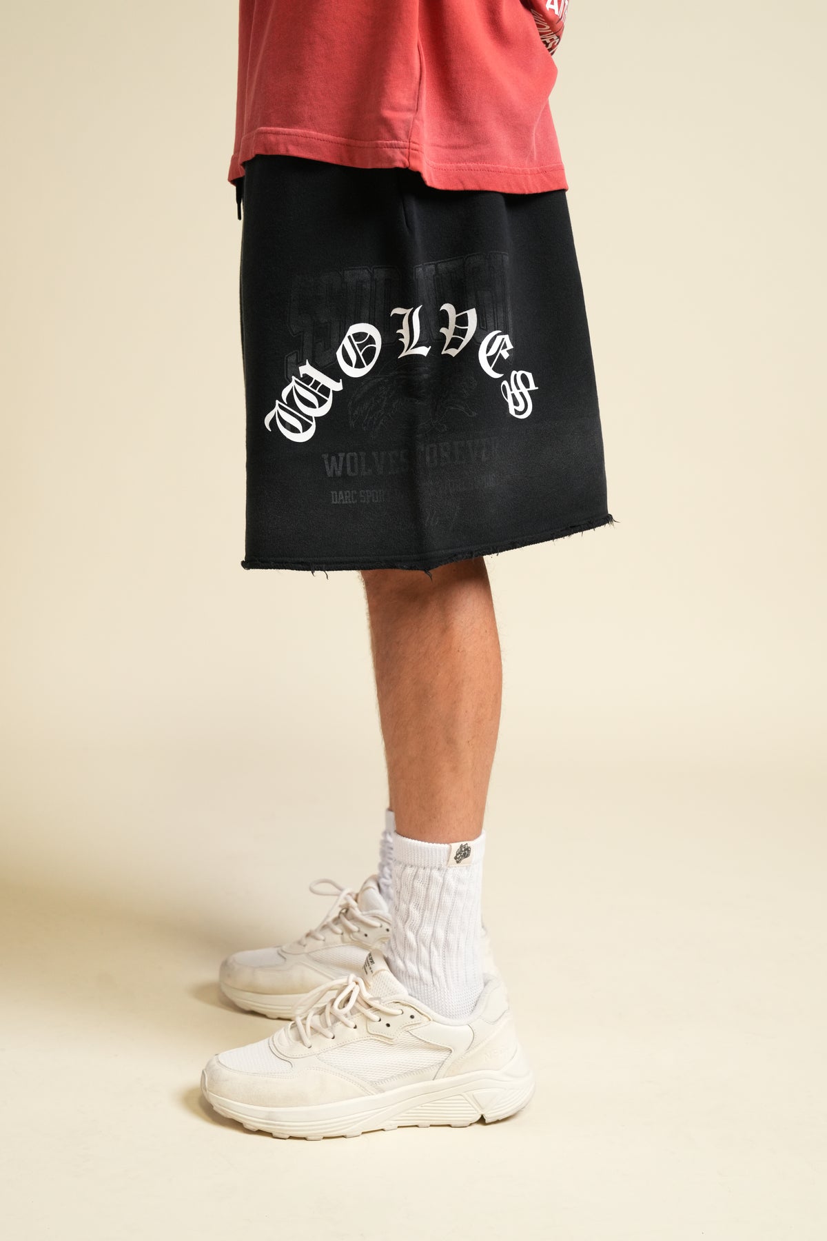 Ohana League Grunge Brock Sweat Short in Black Drift Wash