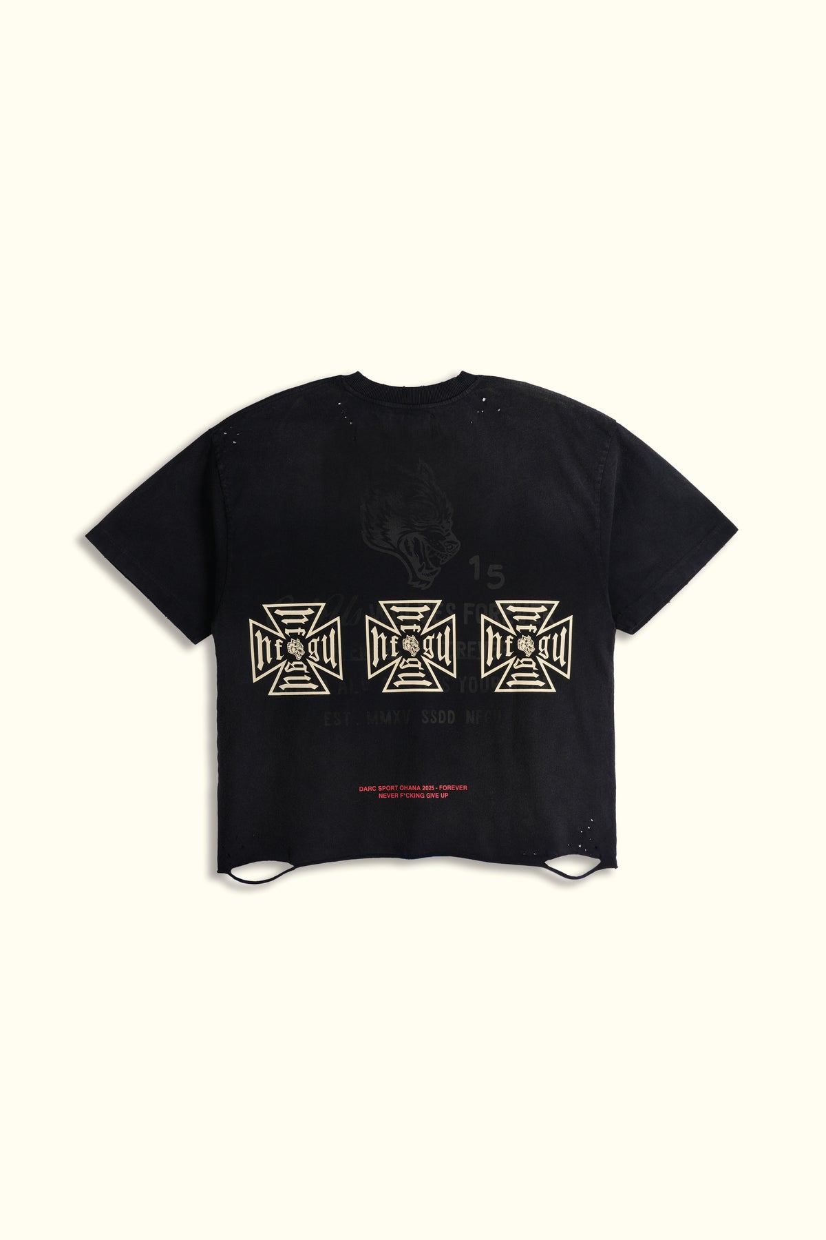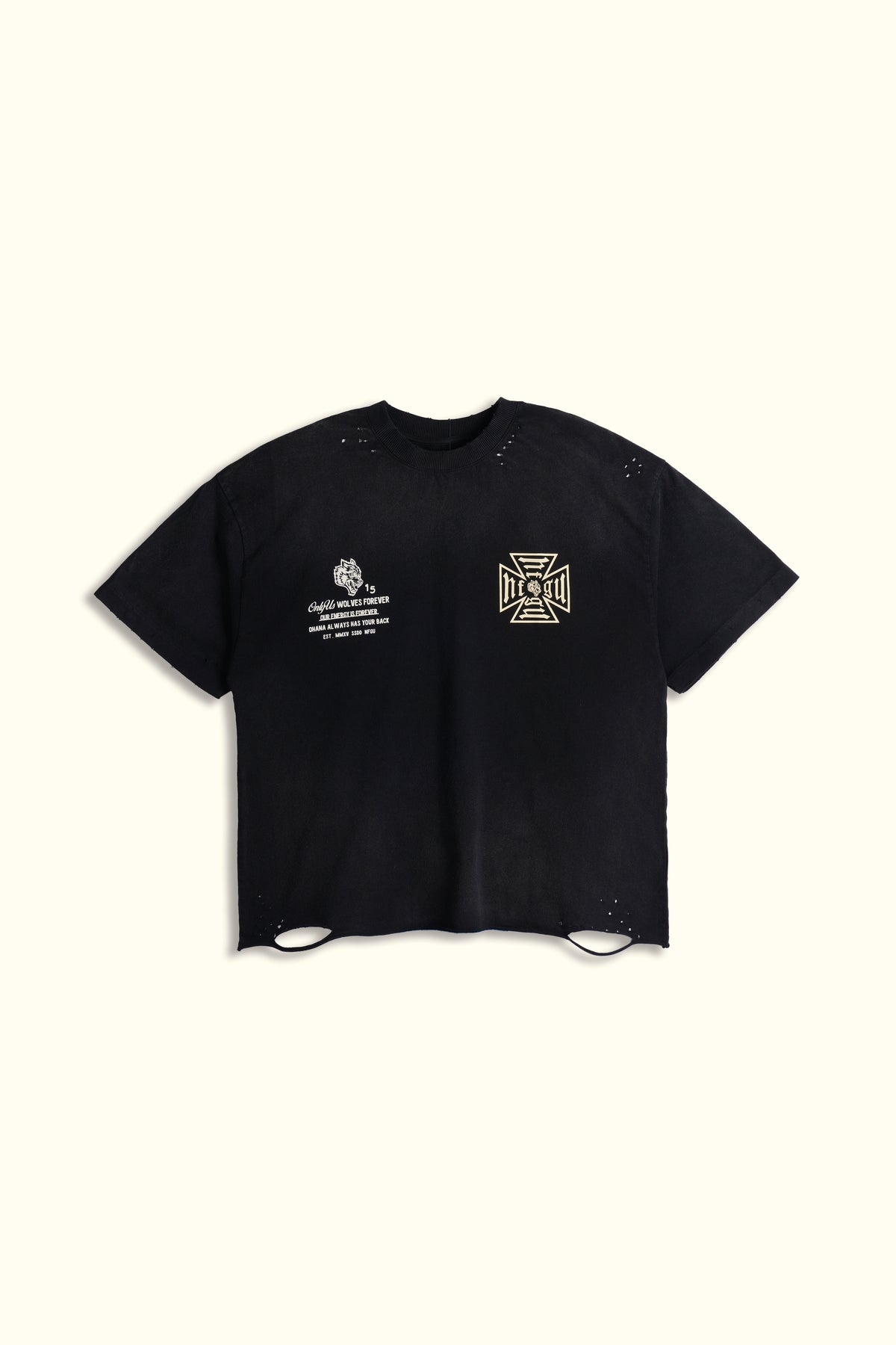 Ohana NFGU Distressed Grunge Tee in Black Drift Wash