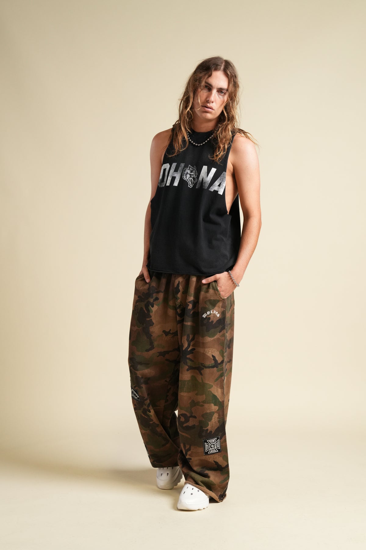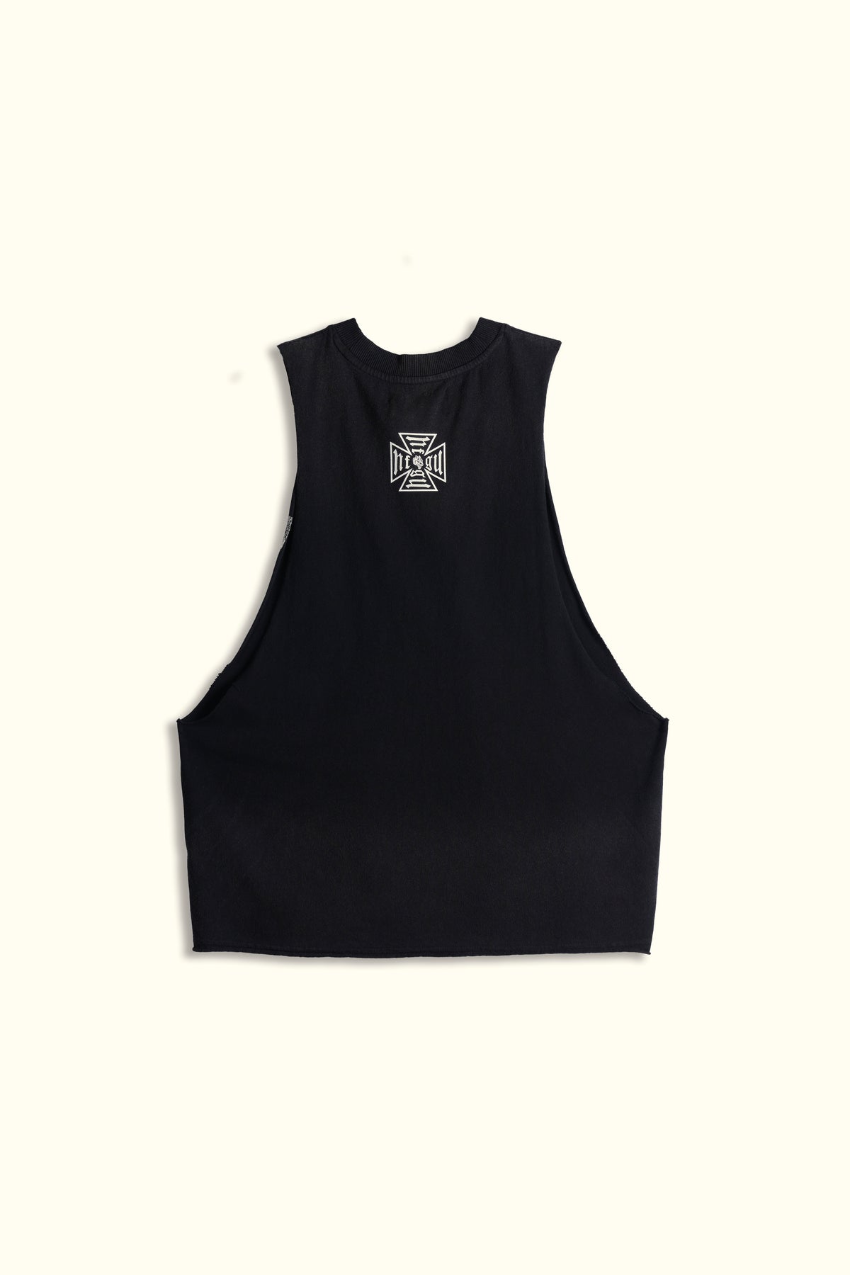 Ohana Wolf "Grunge" Raw Cropped Tommy Muscle Tee in Black Drift Wash