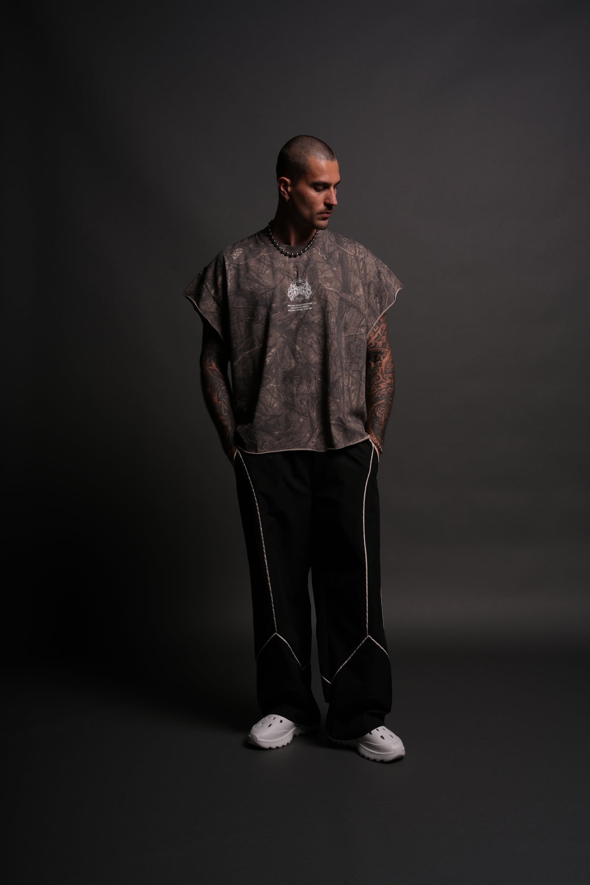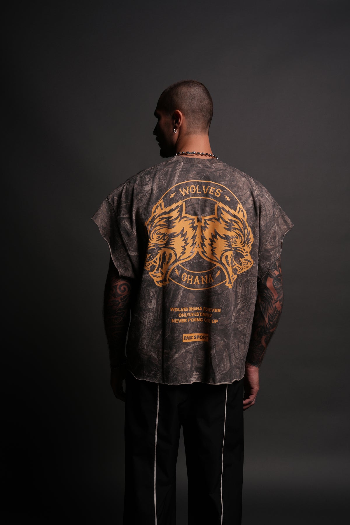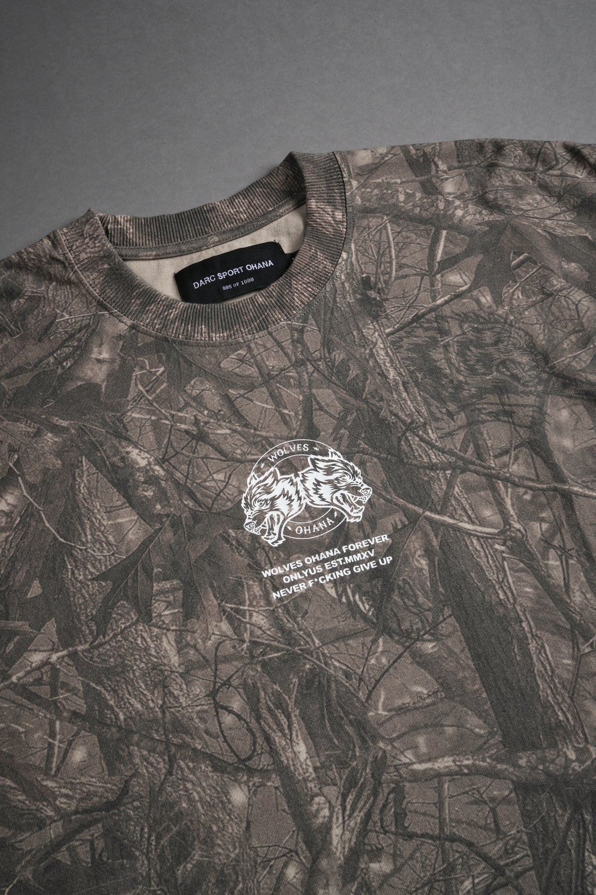 Wolves Ohana Forever "Grunge" Cut Off Tee in Dusk Moss Driftwood Forest Camo