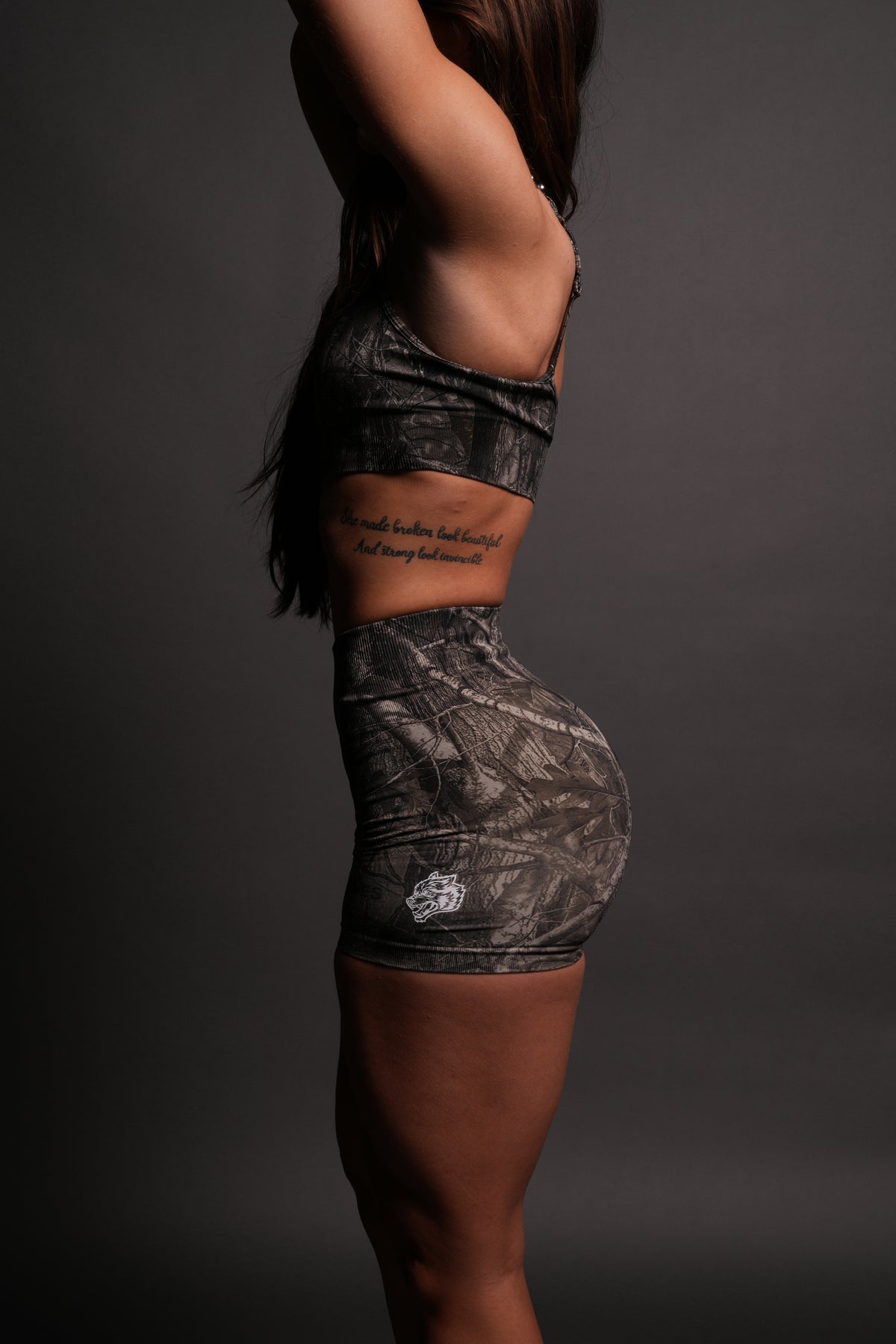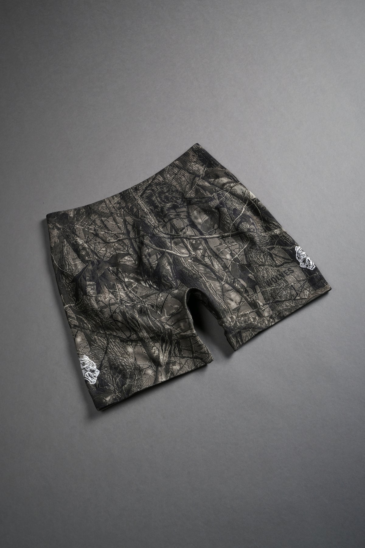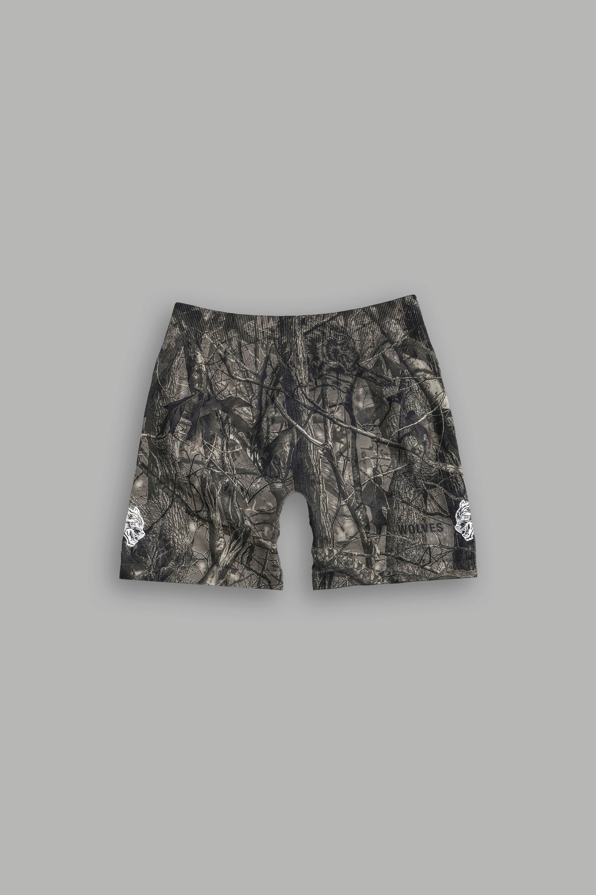 Dual Wolf Seamless Everson "Training" Shorts in Dusk Moss Driftwood Forest Camo